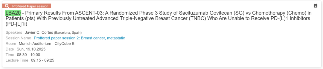 ASCENT-03研究将发布于2025 ESMO大会