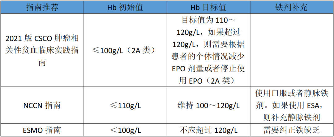 肿瘤瞭望:2021版《CSCO肿瘤相关性贫血临床实践指南》与其他国际相关指南(NCCN、ESMO)相比,存在哪些差异?