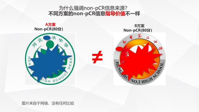 经典的CREAT-X、KATHERINE研究以及最新的OlympiA研究都告诉我们“顾后”对乳腺癌新辅助人群“除根”的重要性。正是因为很重要,所以我们在设计新辅助方案时就要考虑到“顾后”的问题,不同的新辅助化疗方案的“non-pCR”所传递的信息是不同的,CREAT-X、KATHERINE研究的non-pCR信息主要来自于蒽环与紫杉方案,尤其是CREAT-X研究,没有含铂方案;KATHERINE研究的non-pCR信息主要来自大分子抗-HER2单抗。有人认为,都是“non-pCR",有什么不同?个人认为经过不同新辅助方案“筛”下的耐药细胞克隆是不一样的,既然耐药细胞克隆不同,其“套用”已有证据证实的强化方案疗效就缺乏可靠性。这个道理就象不同中学的学生高考模拟考试都是80分(non-pCR),但我们不能认为这2所中学的学生后续需要补习(术后强化)的策略都一样(见图7)。因此,我们在设计新辅助化疗方案时,除了本身是否具有改善生存的证据之外,还有考虑万一non-pCR后续强化是否有证据。
